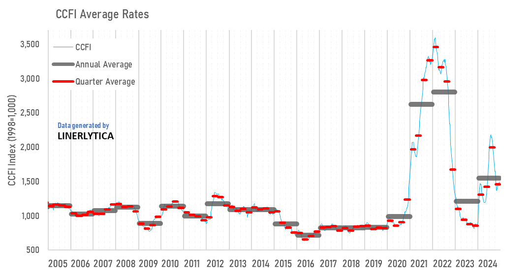 Both the CCFI and SCFI rebounded last week with carriers successfully reversing the recent slide in freight rates with Asia-Europe rates still holding on to most of their recent gains while Transpacific rates are staging a late rally amidst growing USEC port labor tensions and the threat of rising trade tariffs. Average CCFI rates in the 4th quarter is holding just above the 2nd quarter levels which will ensure that carriers’ earnings will remain healthy in the last quarter of 2024 with carriers’ average EBIT margins projected at 20%.
