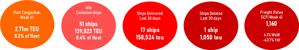 The US threatened to hit China with an additional 100% import tariffs starting from 1 November in retaliation for new controls that China imposed on exports of rare earth minerals. The escalation of trade tensions could provide a temporary boost to container freight rates in October as shippers try to front load before the higher tariffs take effect, but would negatively impact volumes for the rest of the year.