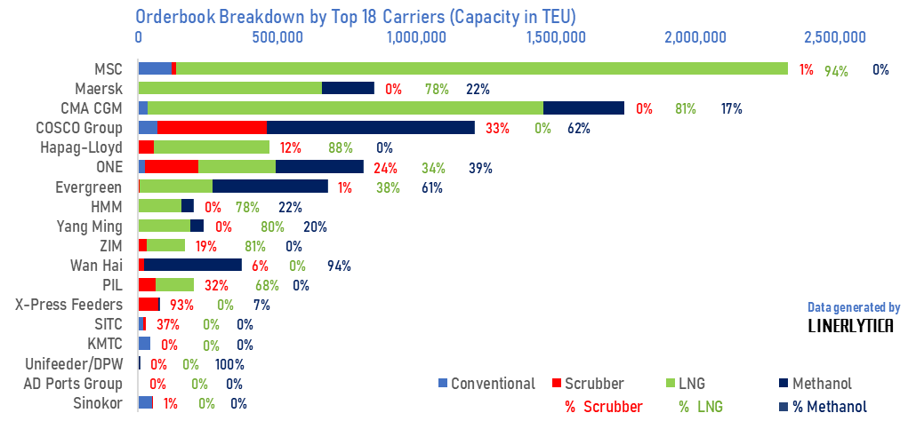 However, the NZF postponement will favour transitional fuels like LNG over methanol with carriers such as MSC set to benefit as 94% of its current orderbook are LNG powered. The NZF delay will also favour carriers with older fleets which would also benefit MSC as its average fleet age at 17 years is higher than its peer average at 11 years.