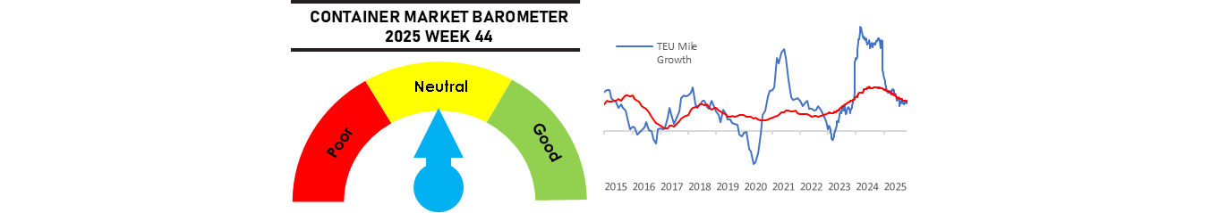 US-China trade tensions eased following the broad agreement reached last week between the 2 countries including a 1 year pause on their respective port fees and a reduction in tariff and other strategic trade barriers. The ramifications on the container markets will be mixed, as the port fees were mainly targeted at COSCO and Matson and had only a limited impact on other carriers and overall global fleet deployment.