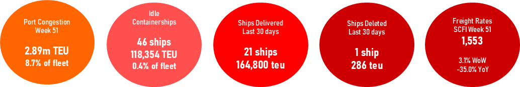Container cargo demand has remained resilient through 2025 with full year throughput growth exceeding 5.1% and global volumes handled at ports worldwide set to exceed 1 Bn TEU for the first time. Freight rates rebounded in mid-December on the back of strong year end demand but the rally remains tentative with TEU-mile demand growth still trailing behind supply growth although the gap has narrowed last week. New vessel orders added in the past week have raised the orderbook to 35.0% of the fleet as carriers continue their relentless chase for market share with charter rates remaining very firm.
