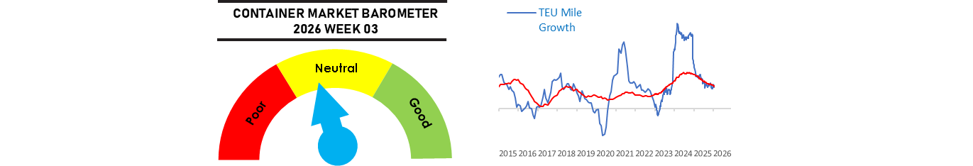Trump’s Greenland tariffs would threaten the fragile balance on the Transatlantic container trades, with westbound rates from Europe to the US already down by 40% since the beginning of 2025. But carriers face a bigger challenge away from the Transatlantic arena as freight rates out of Asia are eroding despite earlier expectations of a market rally ahead of the Chinese New Year. The lack of capacity discipline continues to pull down freight rates with the SCFI shedding 4.4% last week with carriers rolling back earlier rate increases.