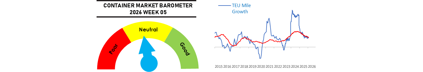 Carriers earnings are back in the spotlight after ONE posted an operating loss in the 4th quarter of 2025. Freight rates have continued to slip ahead of the Chinese New Year holidays and the carriers’ ability to stop the rate slump will continue to be tested in the coming months. Although global TEU-mile demand remains resilient and currently stants at 6.5% above last year’s levels, there are doubts over the sustainability of current cargo growth outside of the US as well as the continuation of vessel diversions away from the Red Sea and elevated port congestion.