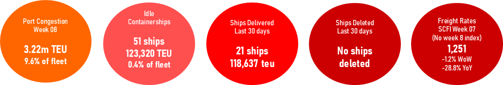 The US Supreme Court ruling on IEEPA import tariffs lifted market sentiments but the impact on Transpacific market demand is likely to be muted as the new 15% global tariff announced by President Trump as well as the threat of further supplementary tariffs will largely neutralize the impact of the IEEPA ruling. The tariff uncertainty provides little incentives for shippers to alter their shipment plans to take advantage of the marginal reduction in the tariff rate in the short term. Transpacific arriers are nonetheless aiming to capitalize on any potential increase in volumes as they push ahead with the 1 March GRI with rates expected to rise by some $1,000 in the coming week, aided in part by the high number of blanked sailings that will remove more than 30% of the capacity over the 2 week post Chinese New Year holiday window.