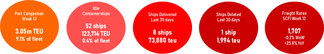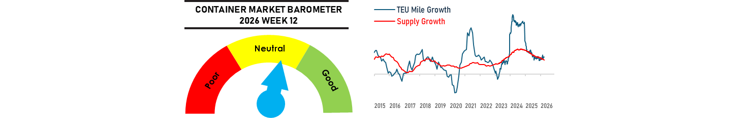 While tensions in the Persian Gulf continues to ratchet upwards, container traffic is adjusting to the extended shutdown in Hormuz traffic with carriers re-establishing intra-Gulf feeders and India-Northern UAE/Oman services to maintain cargo flow to the Gulf region. These come on top of ad hoc Red Sea sailings from China and India that are capitalizing on the demand for alternative gateways to bring cargo into the Middle East Gulf states. Despite the ongoing turbulence, freight rates have started to ease across the board as the initial impact on ships delayed by the Middle East disruptions are offset by the redeployment of surplus ships displaced from their regular Persian Gulf deployment into new routes to fill in for the delayed ships.