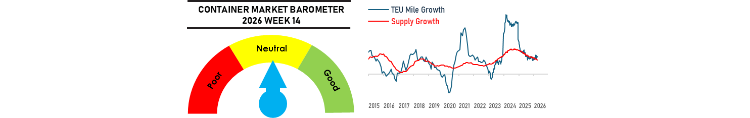 Freight rates are settling down in a holding pattern as carrier focus on recovering the increased bunker costs, while freight futures are cooling after their initial exuberance as it becomes clear that the Hormuz blockade has not had a detrimental impact on overall vessel and equipment availability globally while port congestion has been largely contained in the Arabian Gulf and Indian subcontinent.