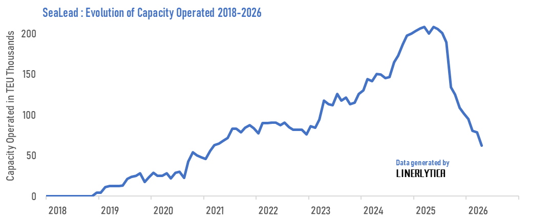 SeaLead is scaling down its operated fleet as it streamlines its global services amidst office closures and staff retrenchments. It also faces a US Civil Forfeiture for $2.4m where the Department of Justice alleged in a lawsuit filed on 6 March 2026 that SeaLead provided shipping services to Iranian interests. US sanctions against Iranian linked vessels announced on 30 July 2025 had already forced SeaLead to redeliver 16 sanctioned ships last year, and it has continued to redeliver more chartered ships in the last few months as the total capacity operated by SeaLead fell from a peak of 208,000 teu in May 2025 to 62,000 teu currently, with more ships due to be redelivered in the next 2 months. MSC has already scooped up the largest ships leaving the SeaLead fleet, ensuring minimal market disruptions from the ships displaced with several carriers also eyeing the remaining ships still left in its rapidly depleting fleet.